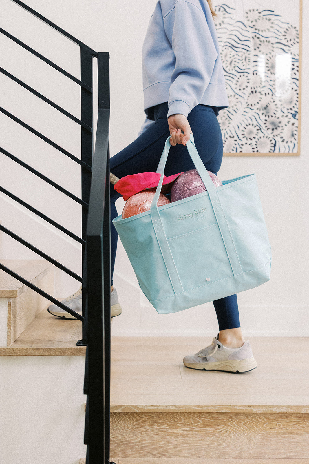 Gingham Mist Trim “Boy Mom” Medium Tote